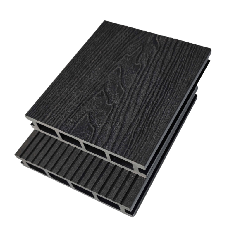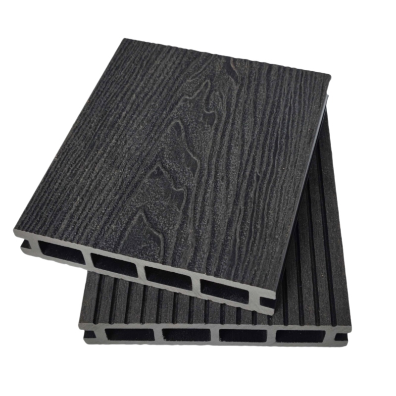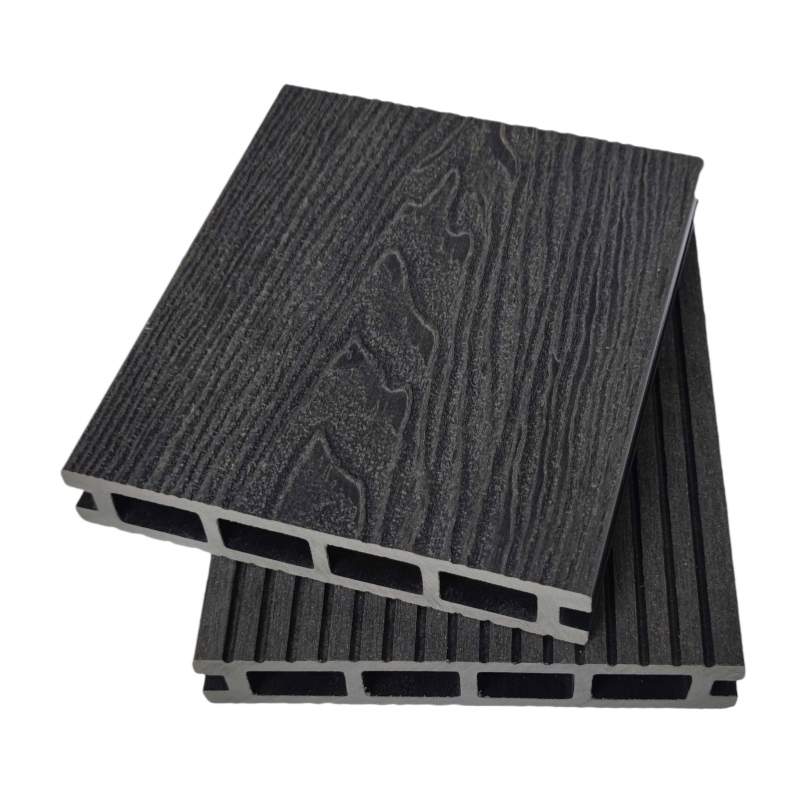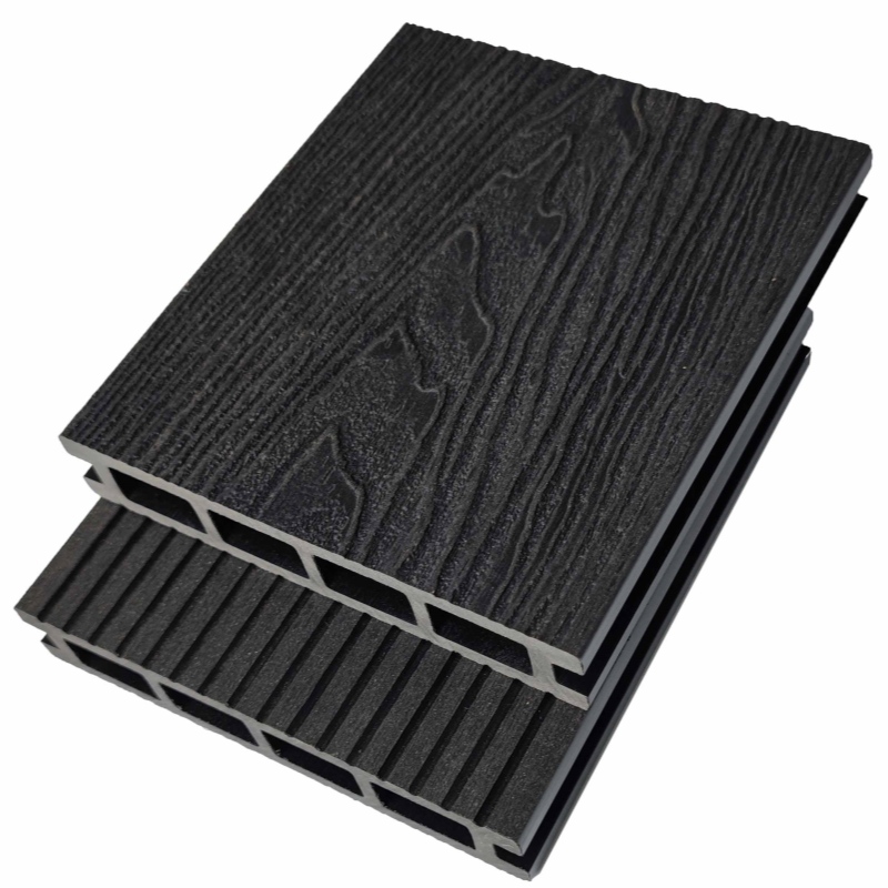 Напольное покрытие для сада и патио из черного древесно-полимерного композита с глубоким рельефом